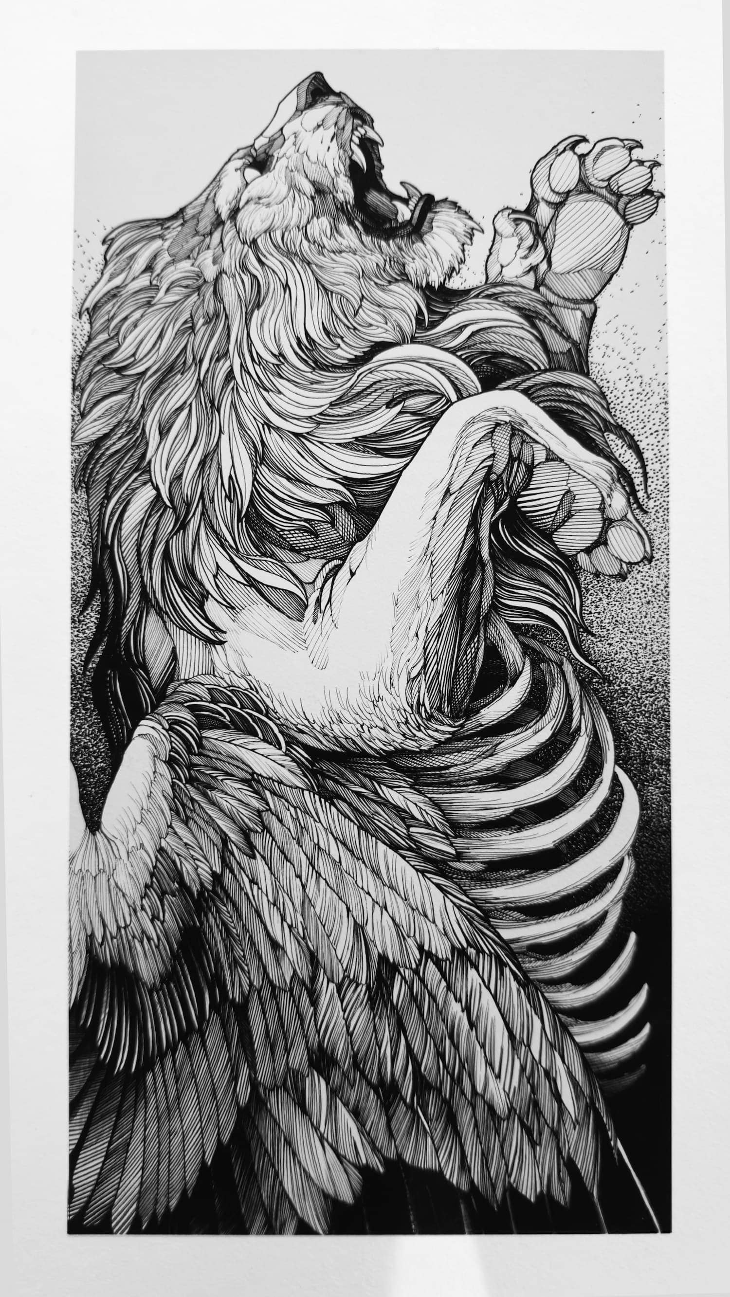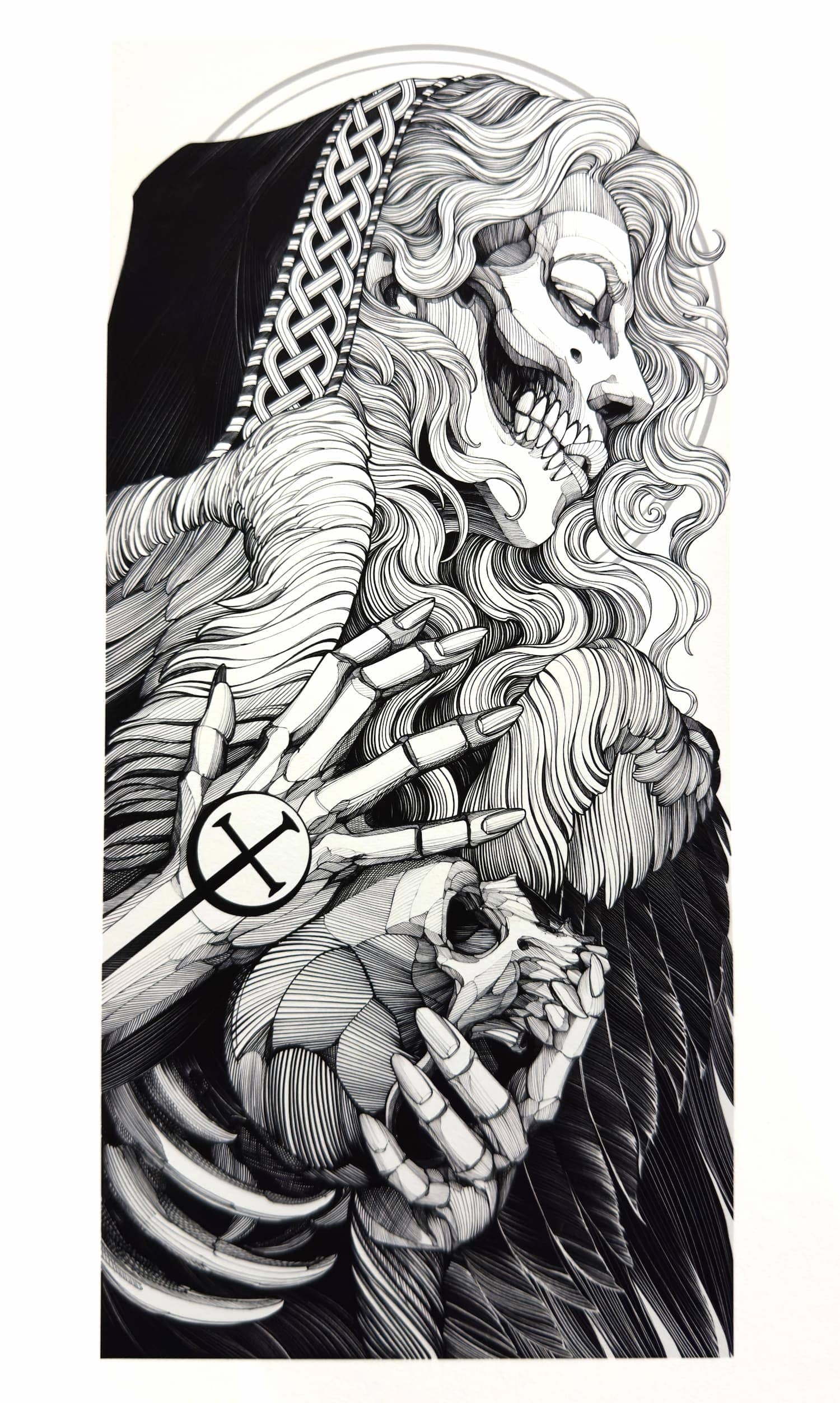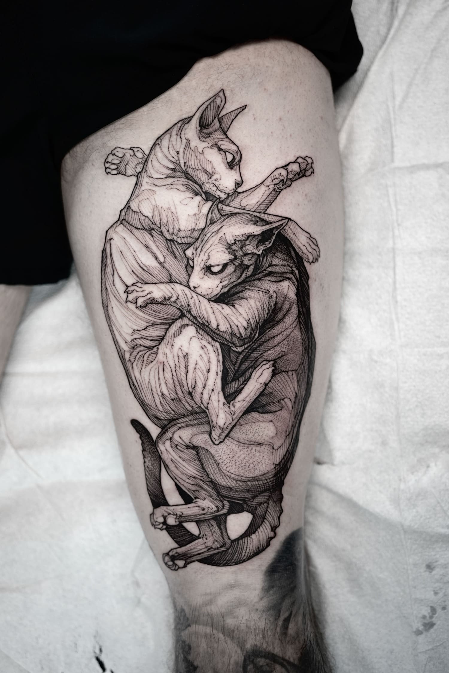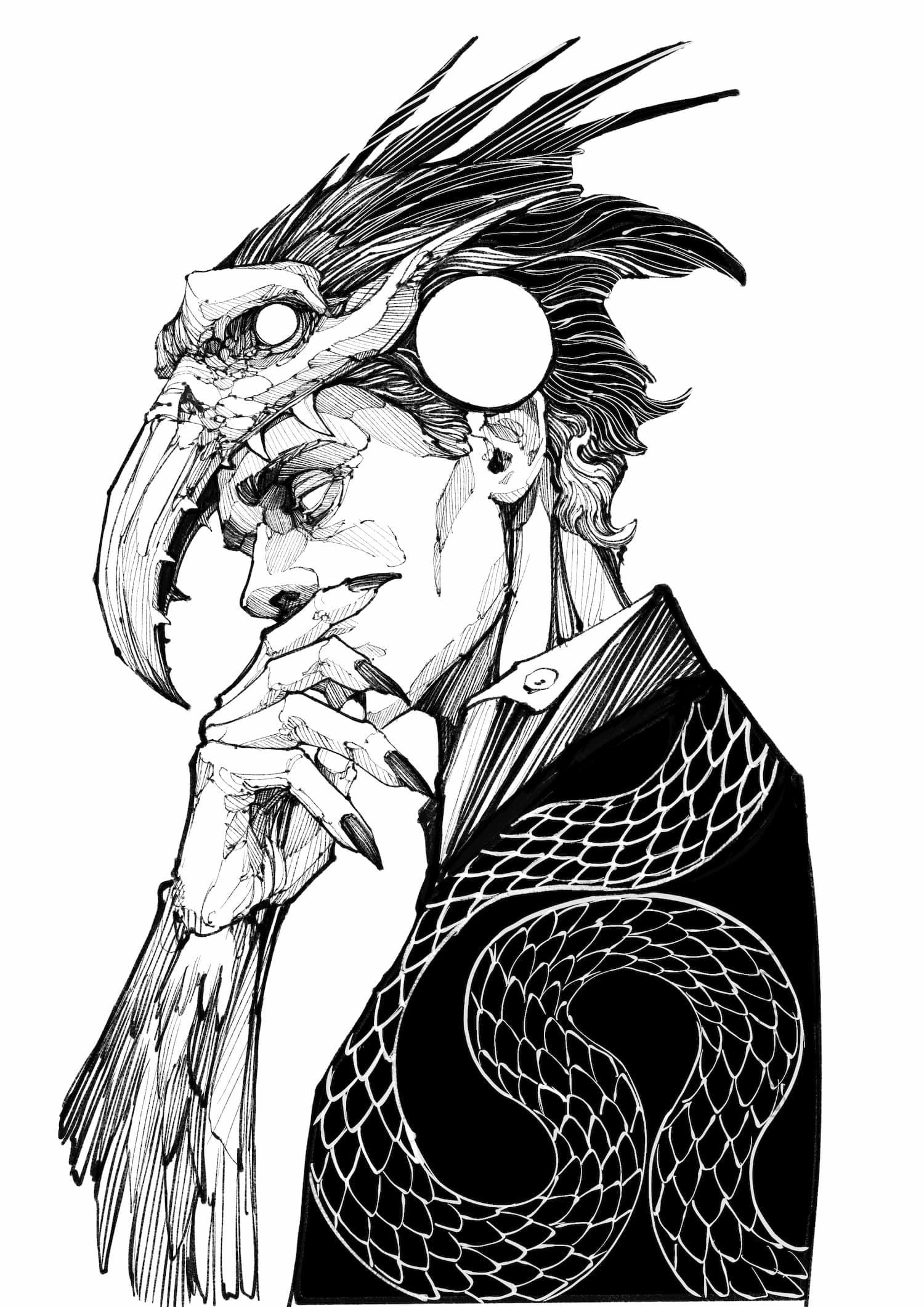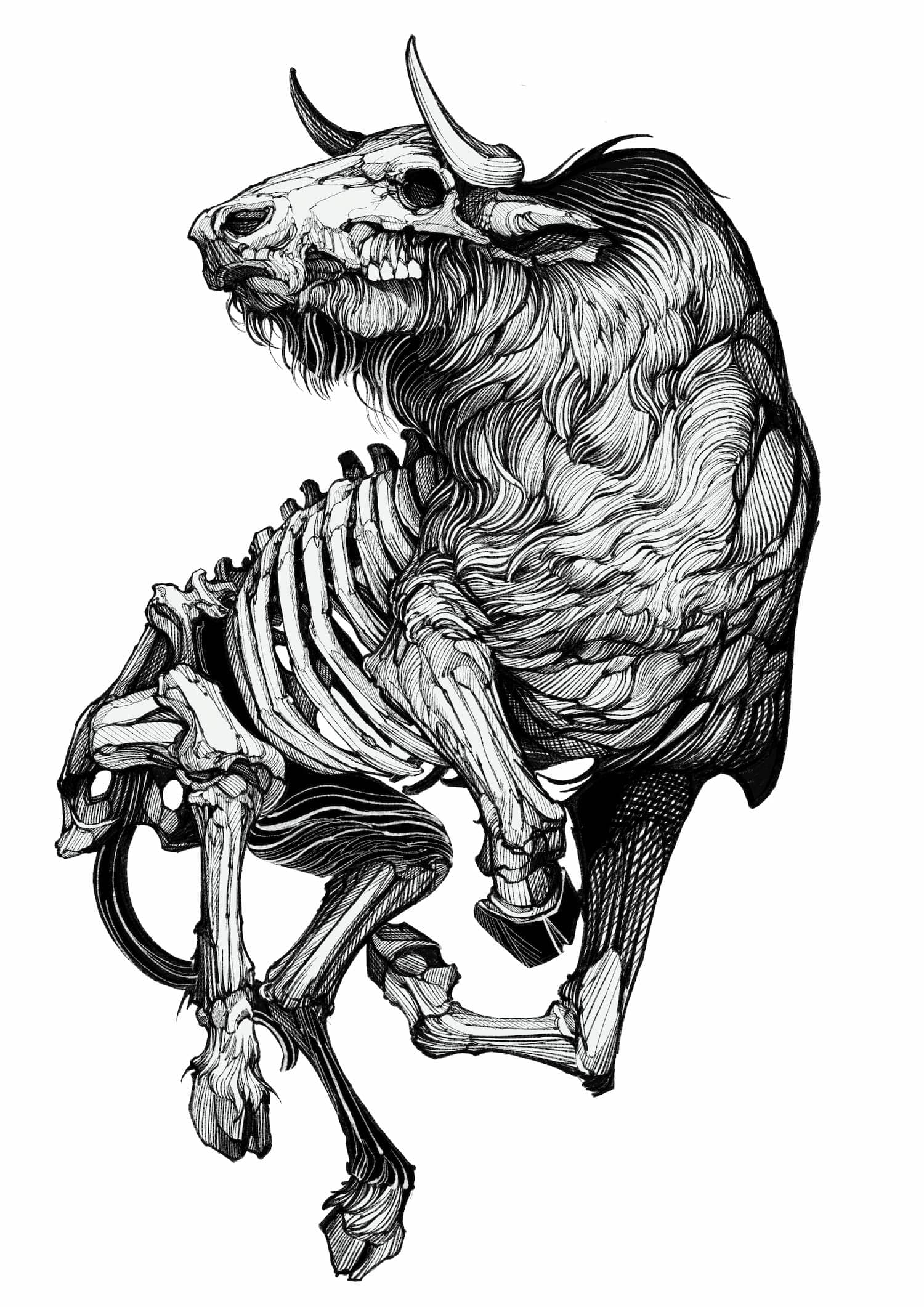 His practice moves between tattooing, illustration, and graphic art, establishing itself not merely as technique, but as a consistent, authorial, and enduring visual language.