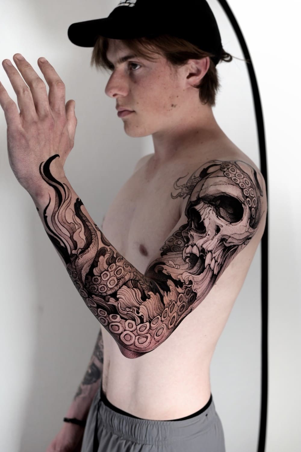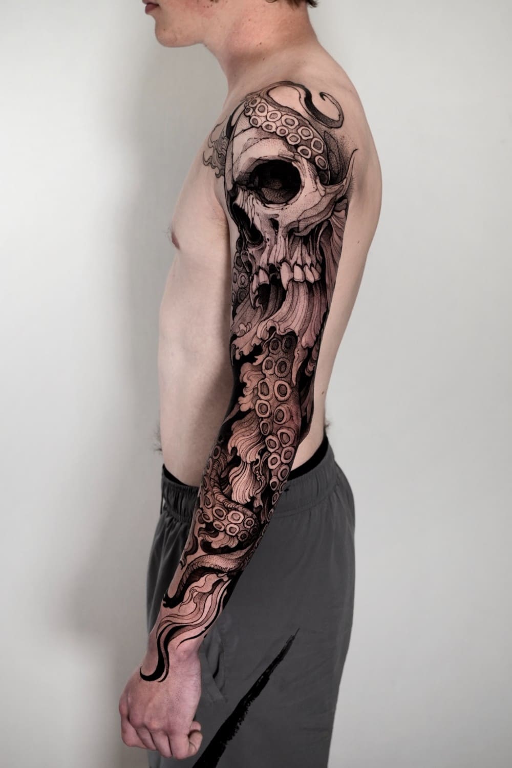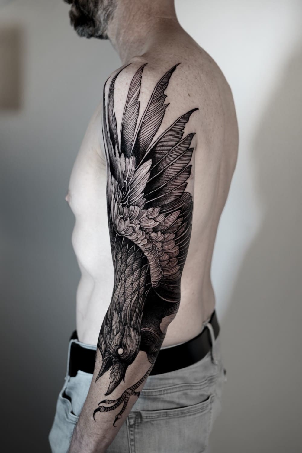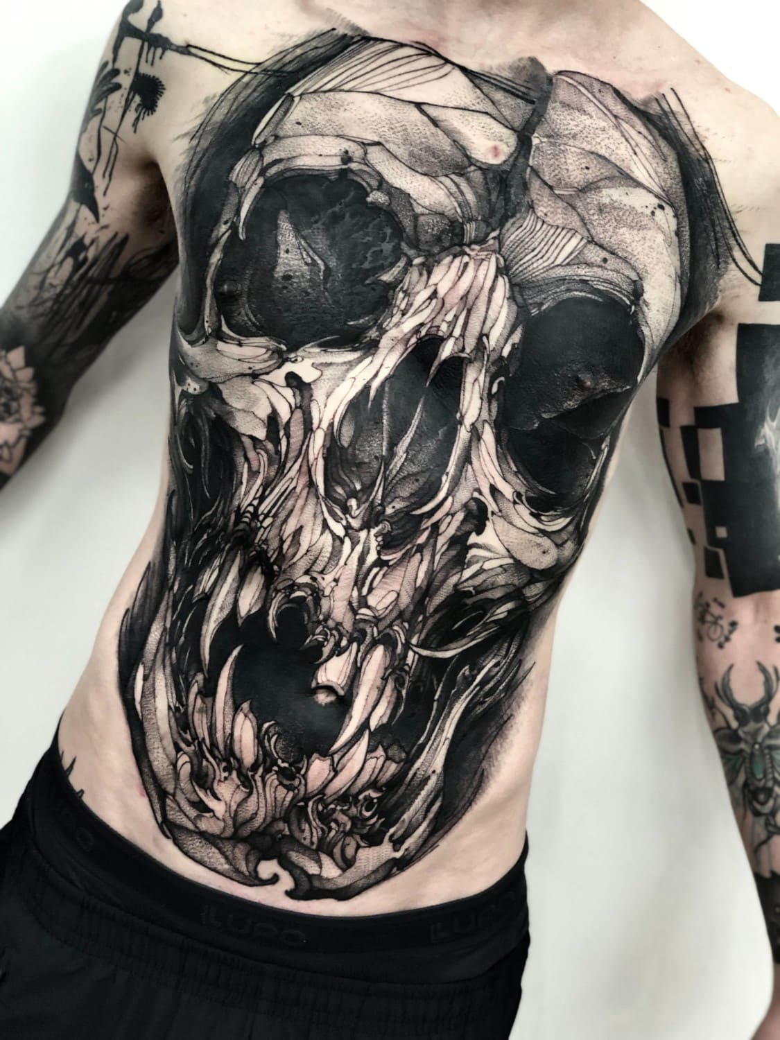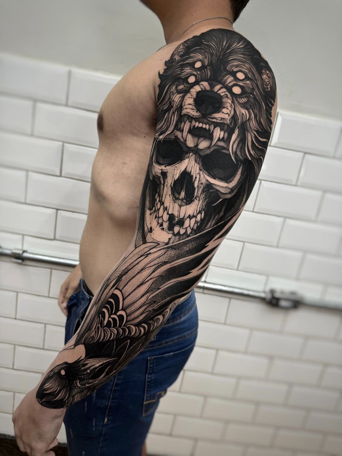A draftsman by vocation, Fredão was influenced early on by illustration and comic art. Over the years, he refined his practice by working exclusively in black and white, exploring contrast, volume, and dense shadow. His work is defined by solid compositions and striking imagery that, on the skin, evoke the qualities of drawing on paper or canvas—preserving the gesture, texture, and immediacy of freehand work.