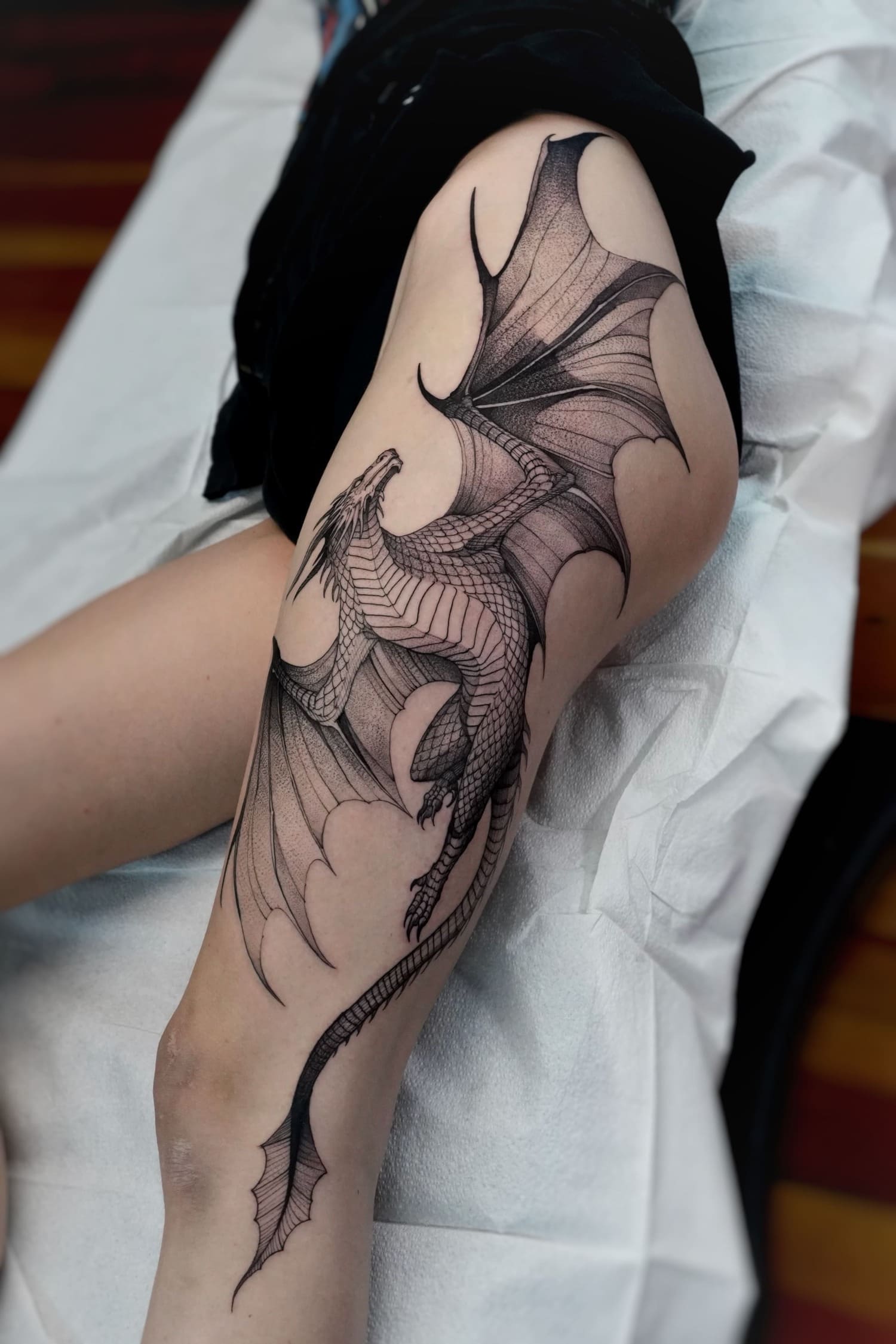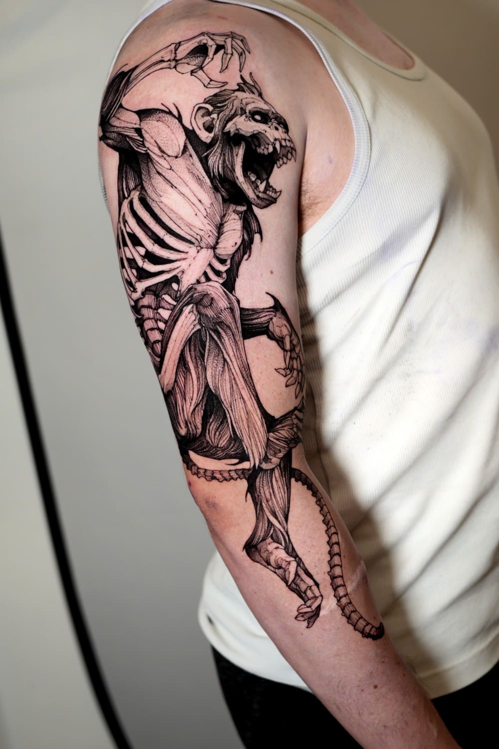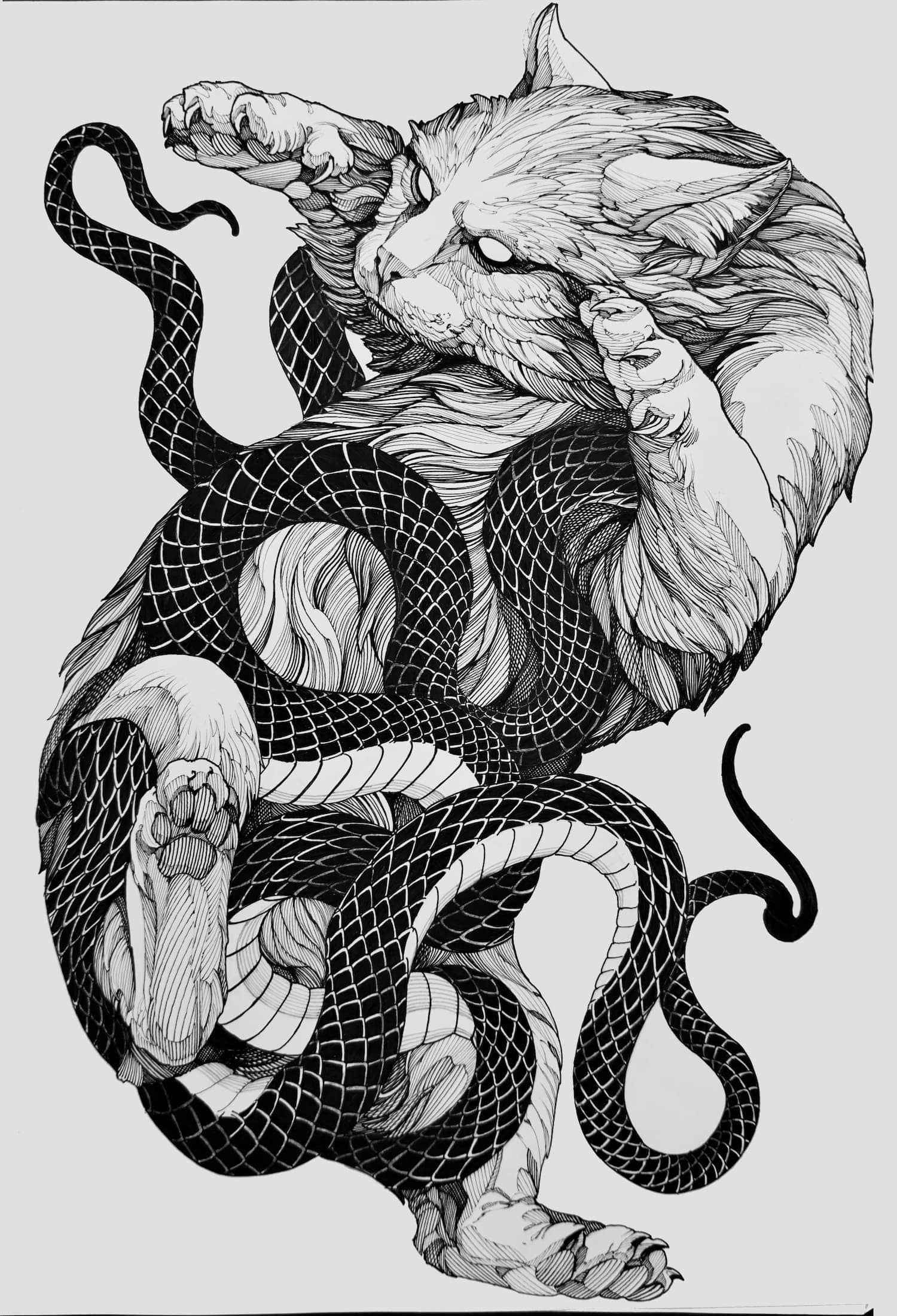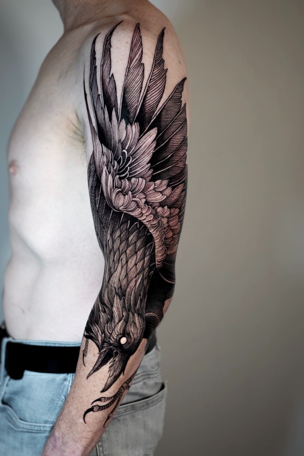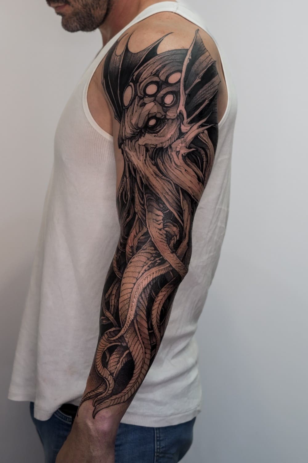 A draftsman by vocation, Fredão was influenced early on by illustration and comic art. Over the years, he refined his practice by working exclusively in black and white, exploring contrast, volume, and dense shadow. His work is defined by solid compositions and striking imagery that, on the skin, evoke the qualities of drawing on paper or canvas—preserving the gesture, texture, and immediacy of freehand work.